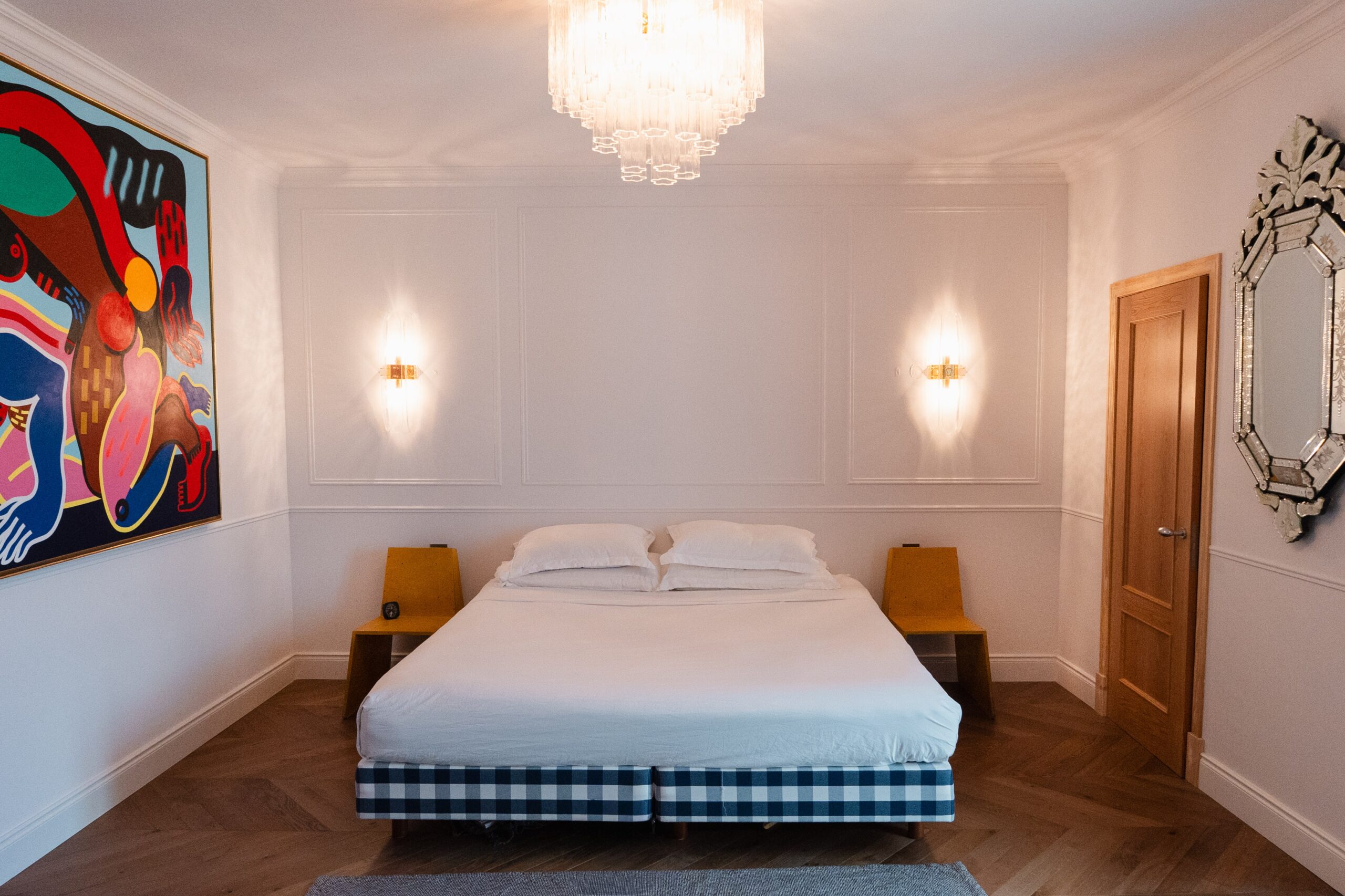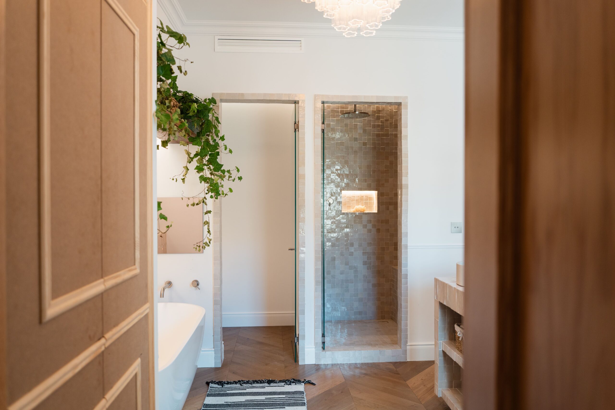 - Herringbone parquet flooring throughout